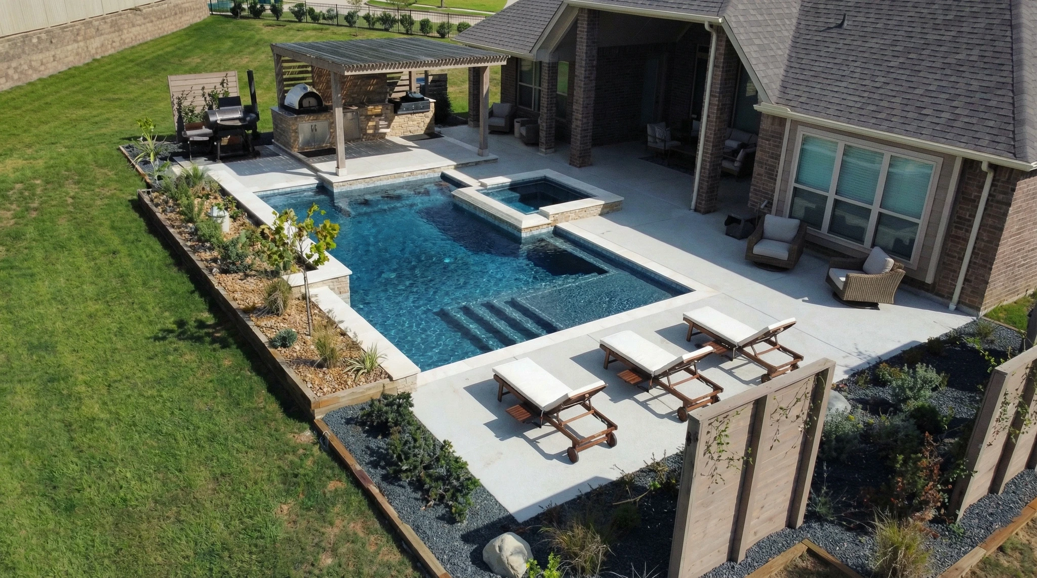 At LD Outdoors Design, swimming pool construction is planned around Houston conditions from the start. Not generic designs. Not rushed builds. Real planning based on how local yards behave year after year.